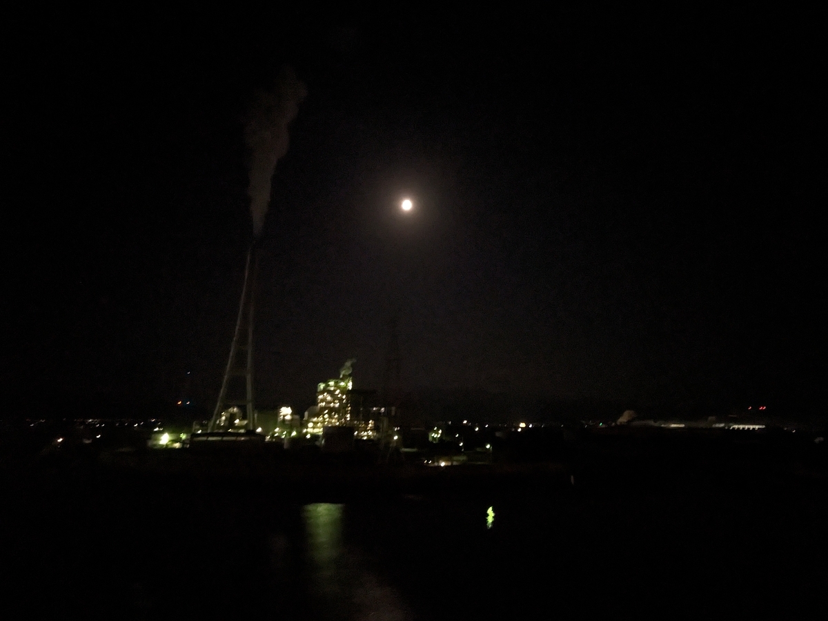 夜も更けた11時頃。デッキに出ると船は明石海峡大橋に突入。