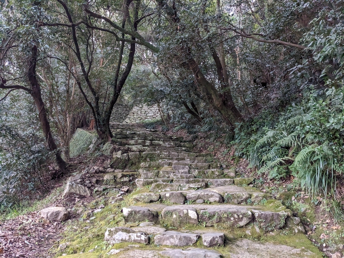 入ると石段が続き重荷を背負った体を虐めてきます。