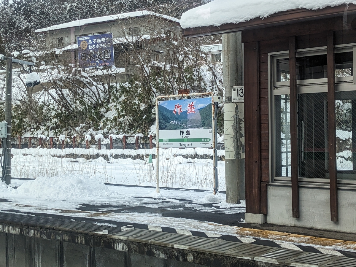 暫くすると県境近づく作並へ。駅名板から漂う北朝鮮の香りはともかく、ここから雪が本格的♂に増えてきます。
